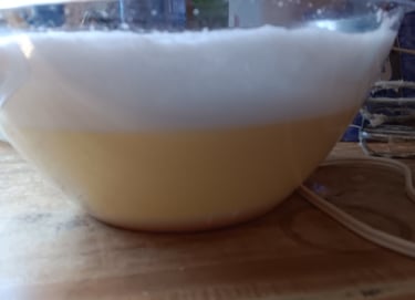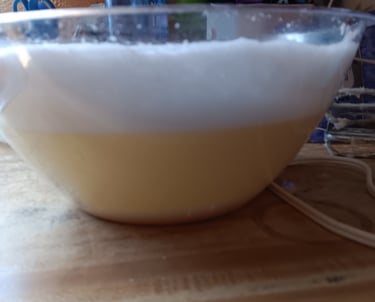 You can see as you disturb and begin to extract the saponin from the root it naturally begins to sudd, we then use the flax seed and xanthan gum to capture the suds and the bottom layer of saponin concentrate to give it a more evenly spread mmixture.